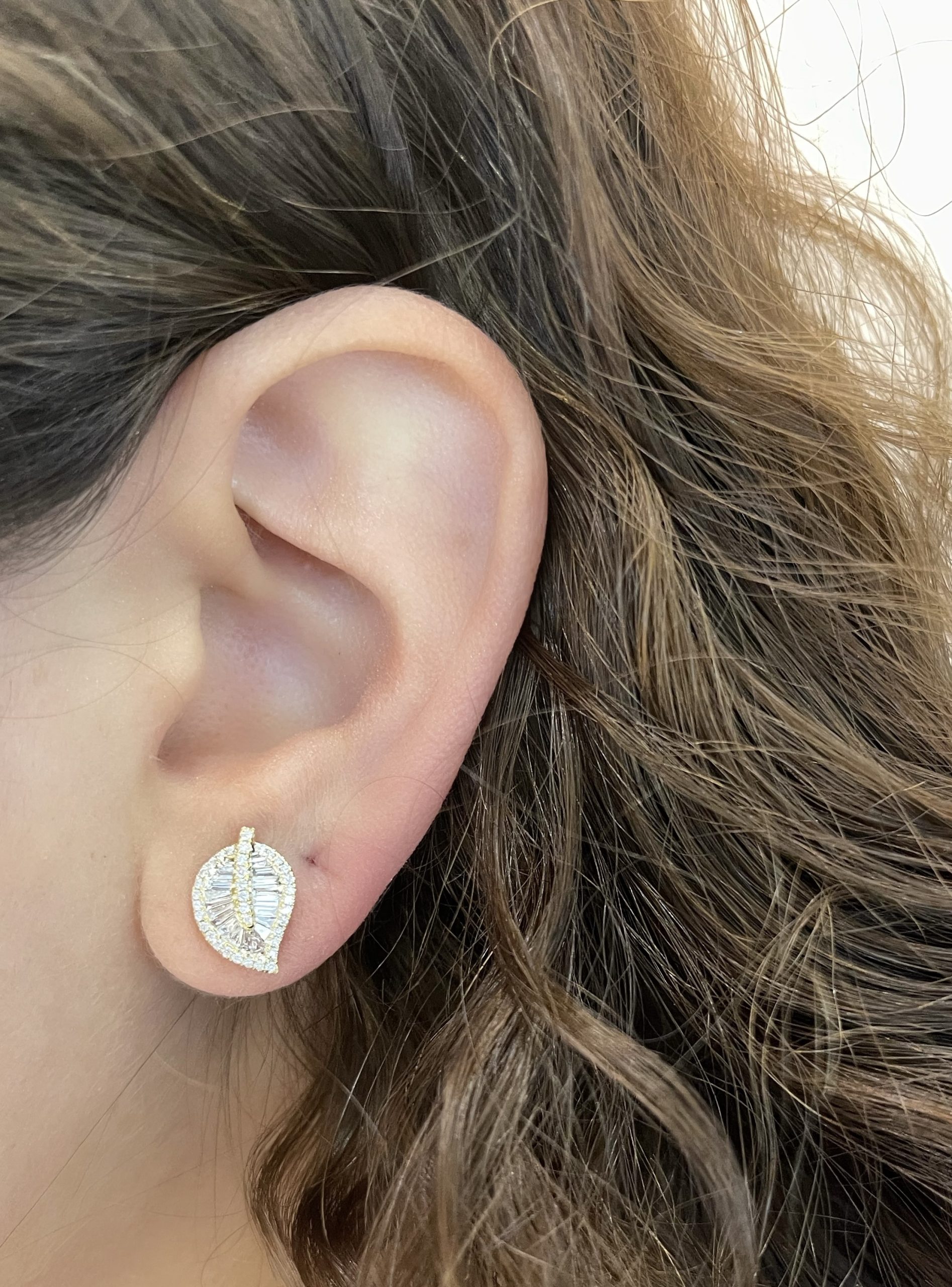 These baguette leaf studs will be a staple in your jewellery box! Made in 14K and VS diamonds. Available in white, rose, or yellow gold. Please allow 3-4 weeks for production.