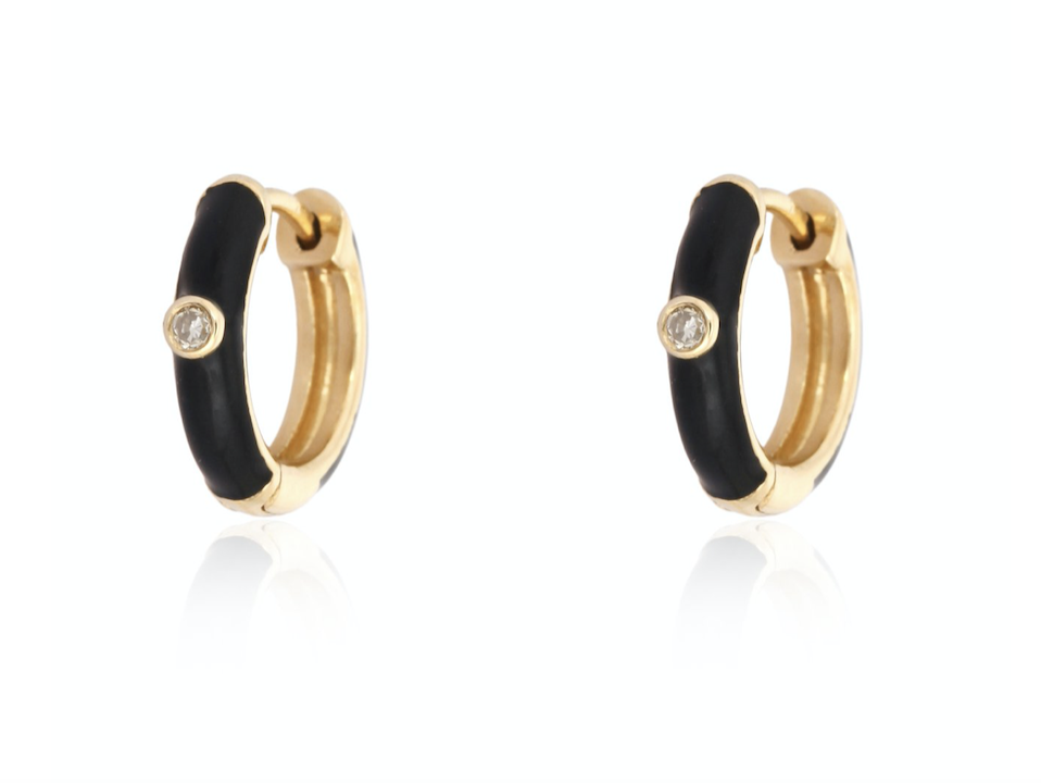 Black enamel and diamond huggie, available in 14K Yellow Gold, 0.03 TCW