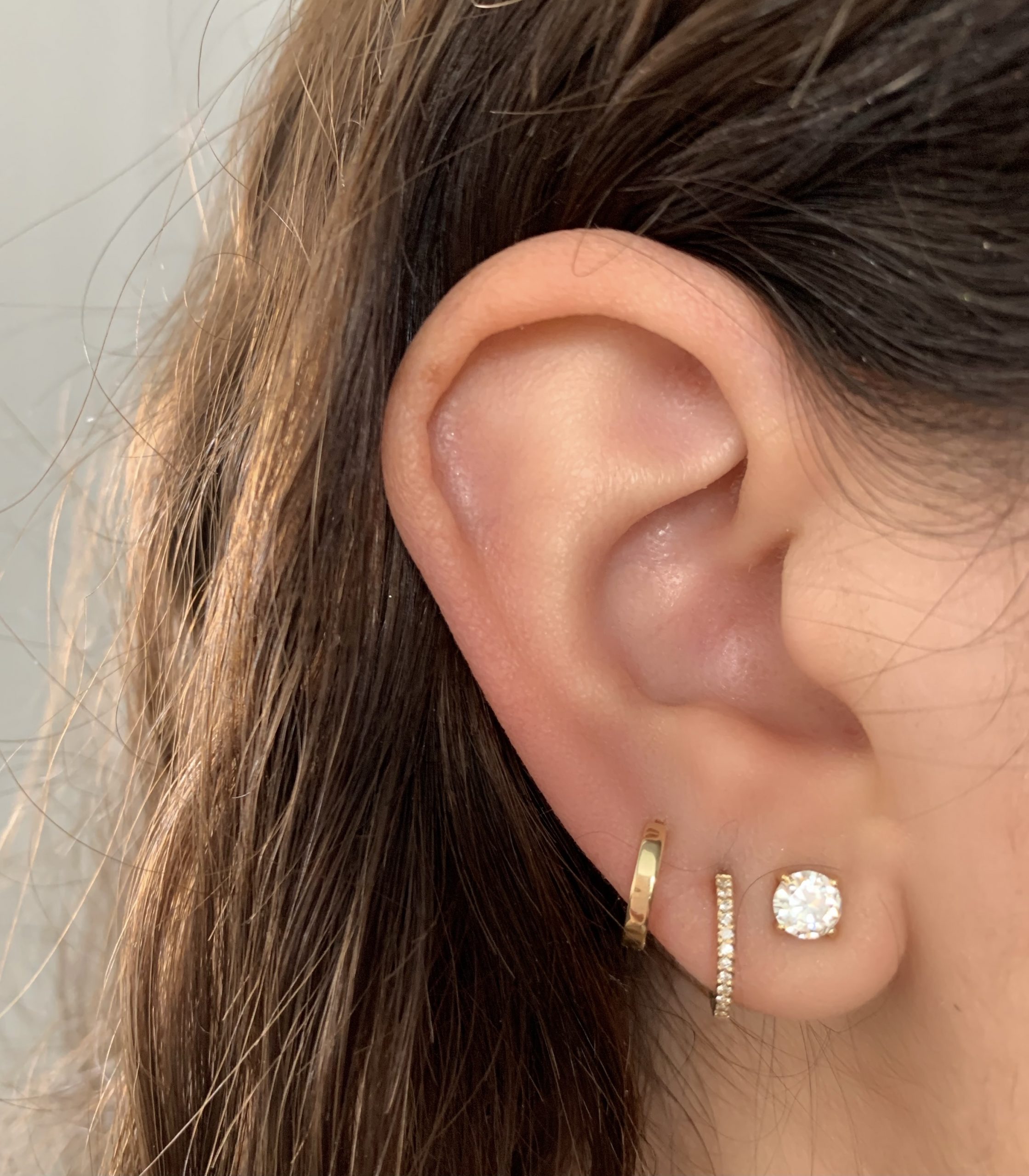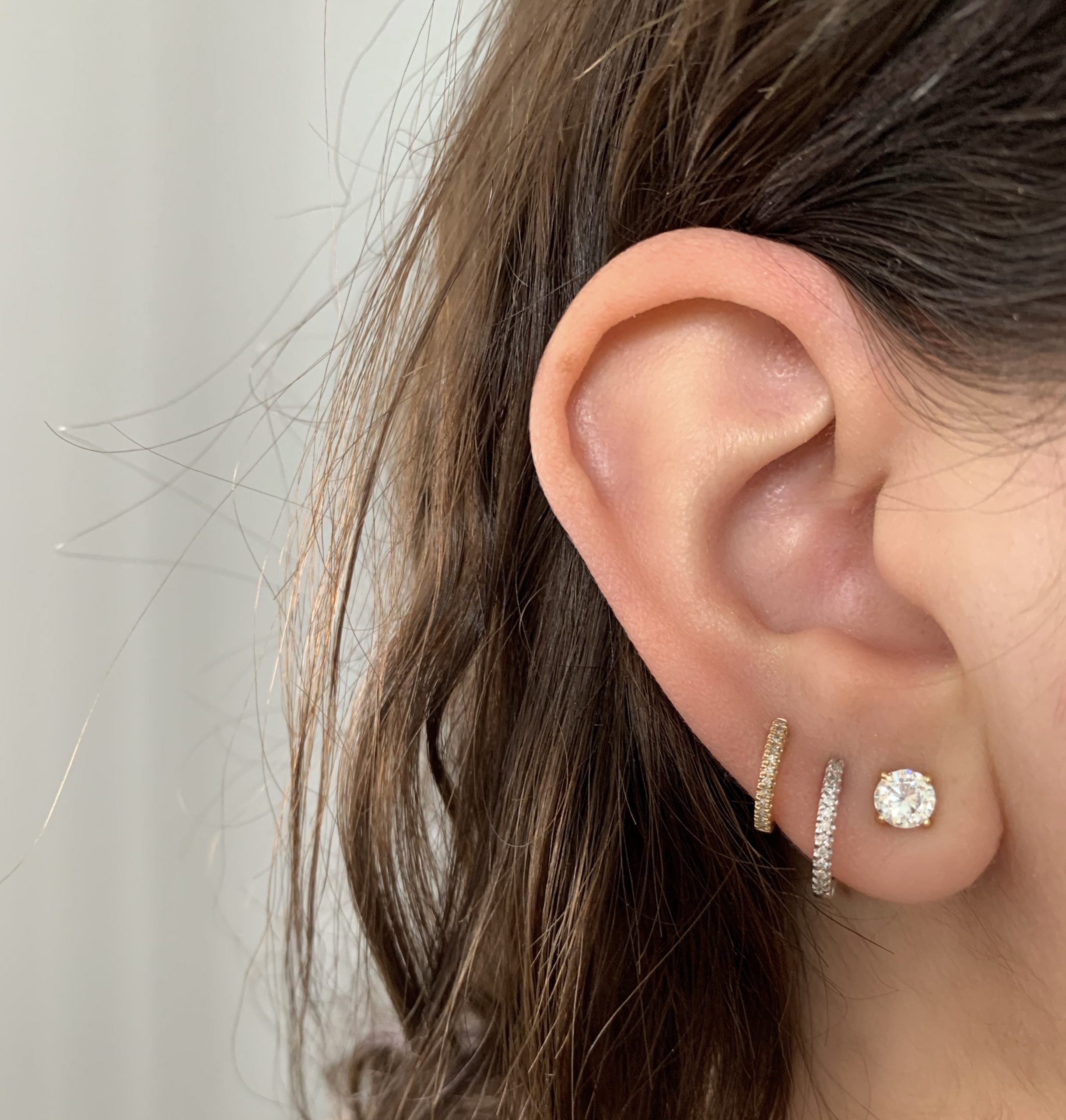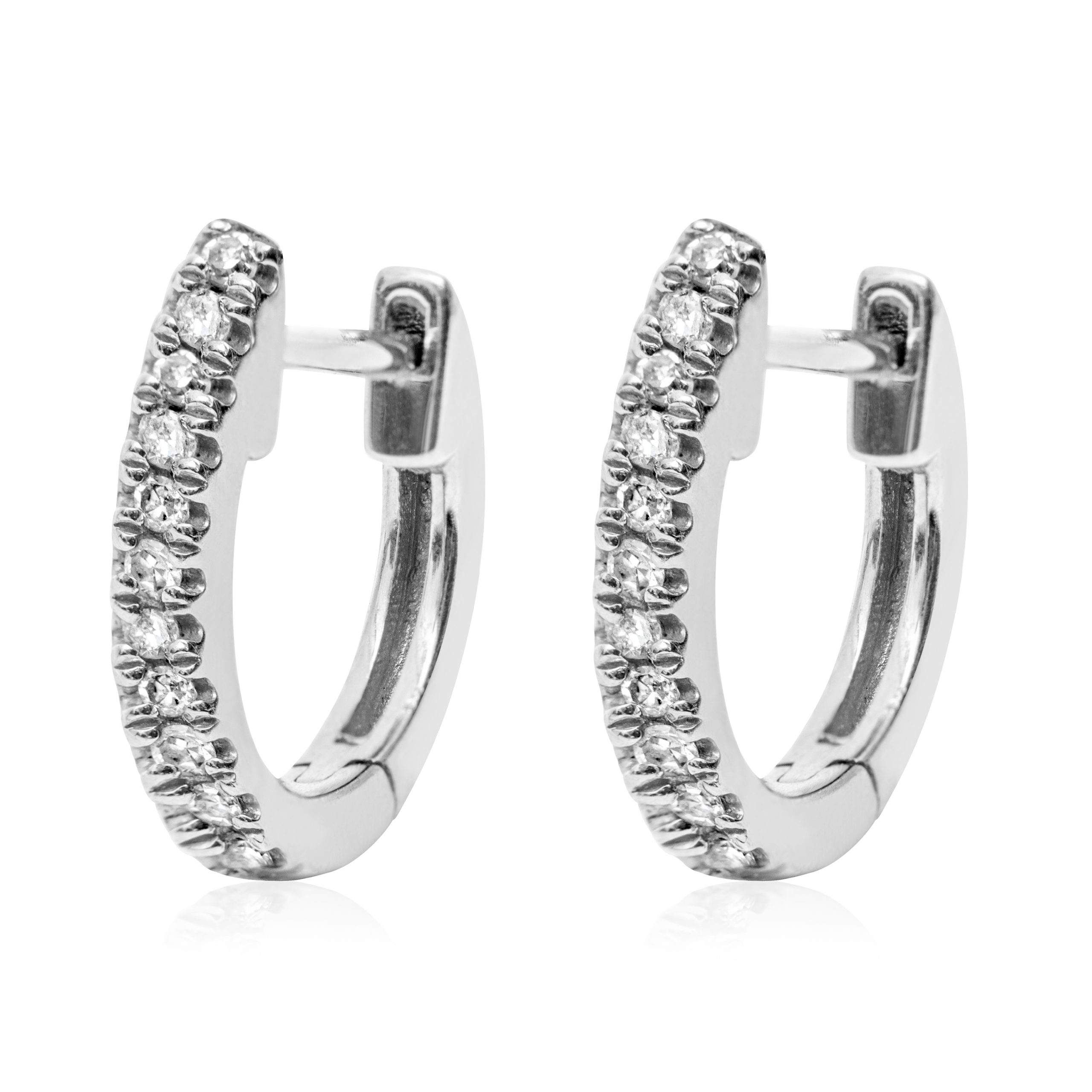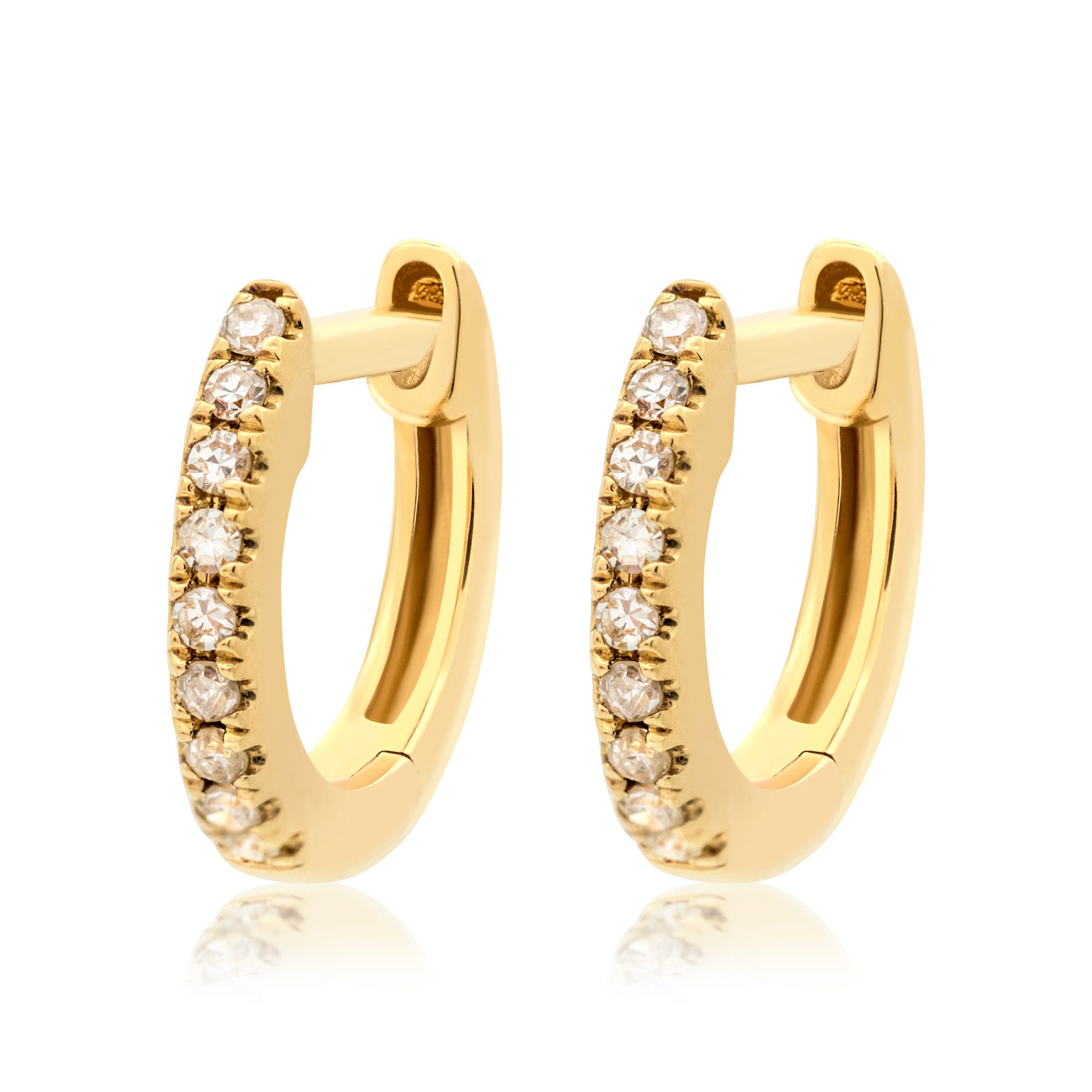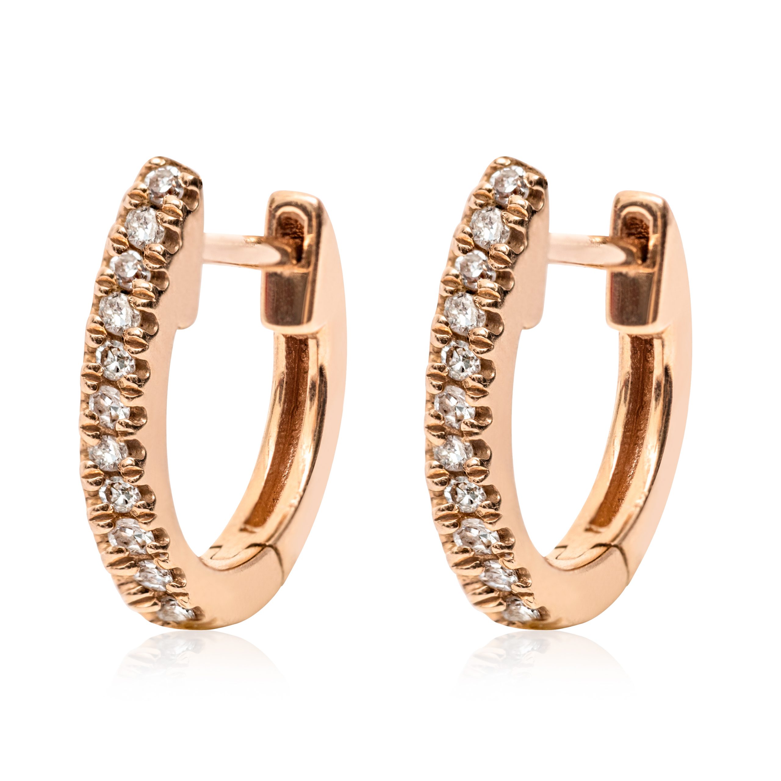14K mini diamond huggies, the perfect everyday pair. Diamond Weight: 0.15 ct. Available in white, yellow, or rose gold. Please allow 2-3 weeks for fabrication.