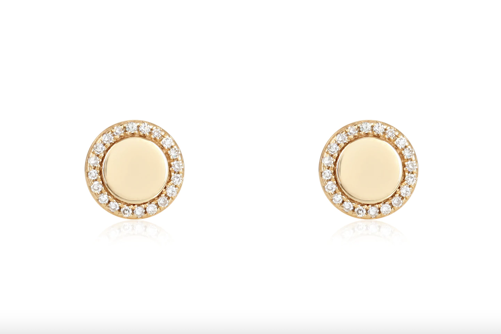 Diamond Pavé Discs, available in 14K white, yellow or rose gold with diamond micro pavé. Discs are 7MM in size. Butterfly backs are included.Please allow 3-4 weeks for production.