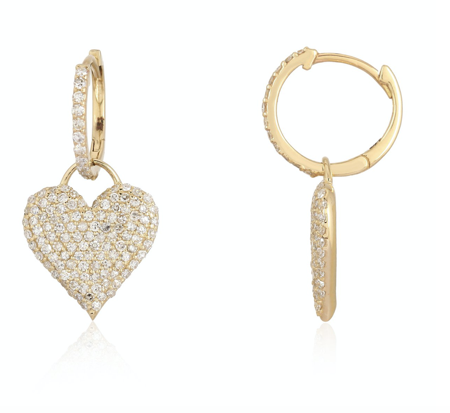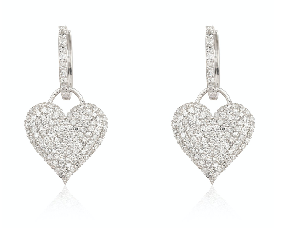 Diamond pavé heart charm on diamond pavé buggies, available in 14K White or Yellow Gold. Please allow 3-4 weeks for production.
