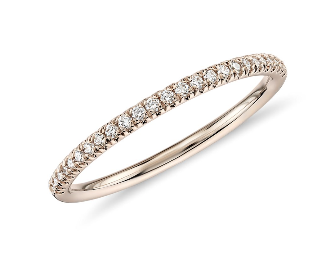 Diamond Pinky Band features 0.50 CT of Si/GH diamonds, full way. Micro pave setting on 14K yellow, white, rose gold. Please allow 2-3 weeks for production.