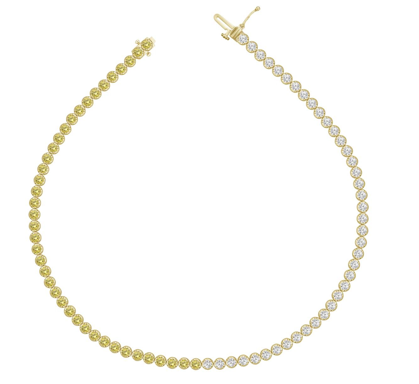 The Half Yellow Sapphire Half Diamond Bezel Bracelet is available in 18K White, Yellow and Rose Gold. Diamond Weight 0.70 CT, SI G/H. Please allow 2-3 weeks for production.