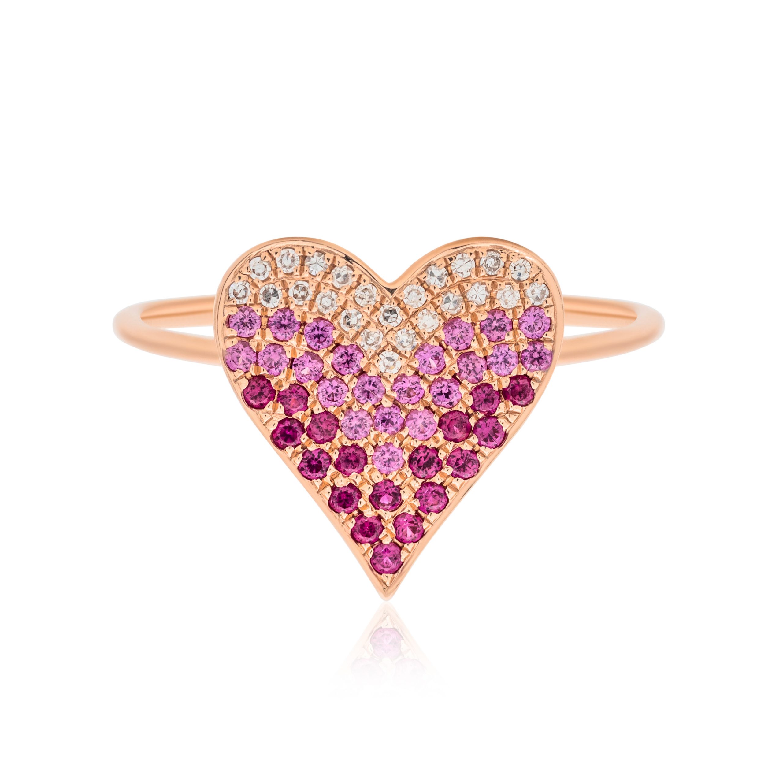 Our Ombre Sapphire Heart Ring, is set on 14K rose gold, with Diamond and sapphire pavé. Please allow 3-4 weeks for production.