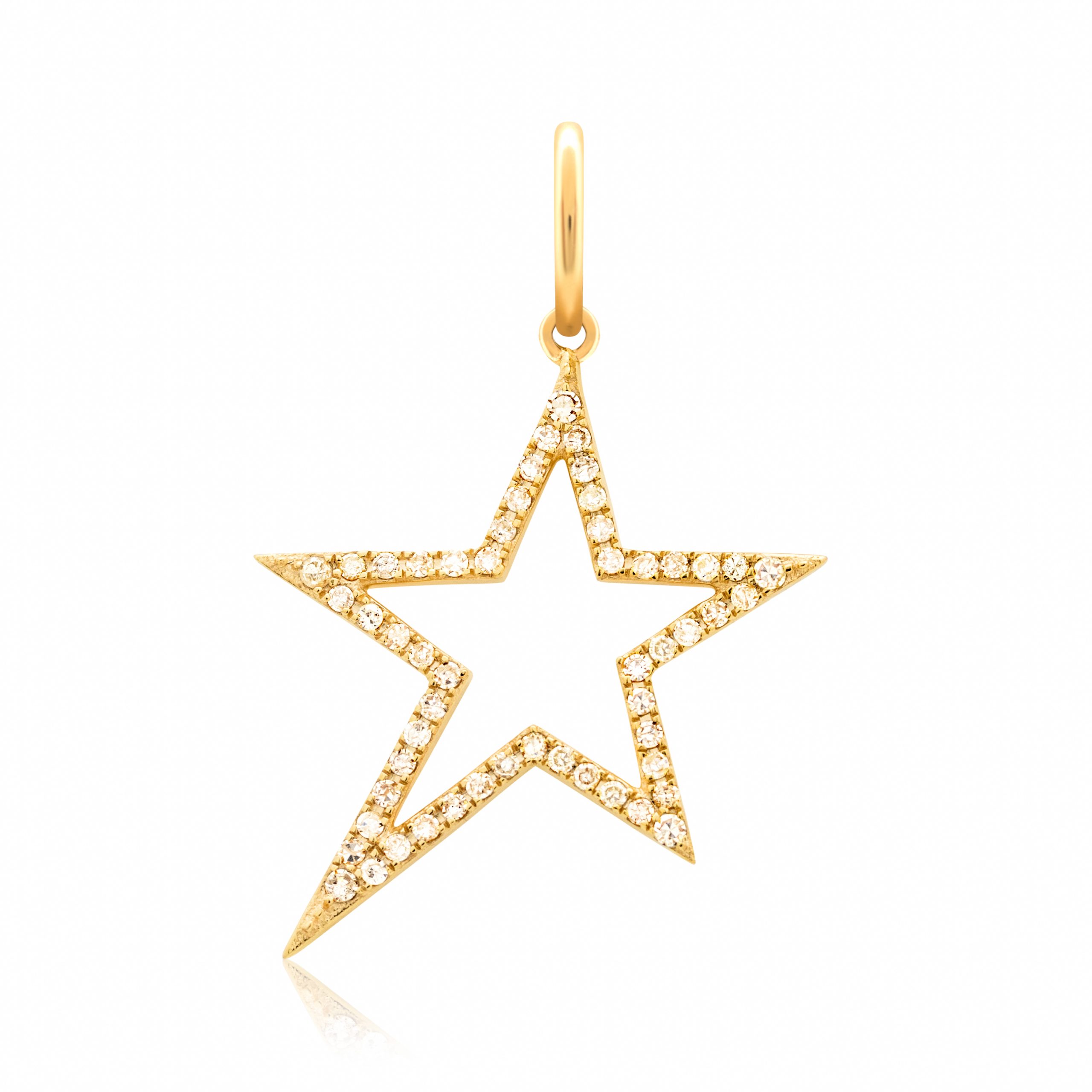Open Diamond Star Charm, great for any chain! Set on 14K solid gold with diamond pavé. Star charm measures 15MM. Please allow 3-4 weeks for production.