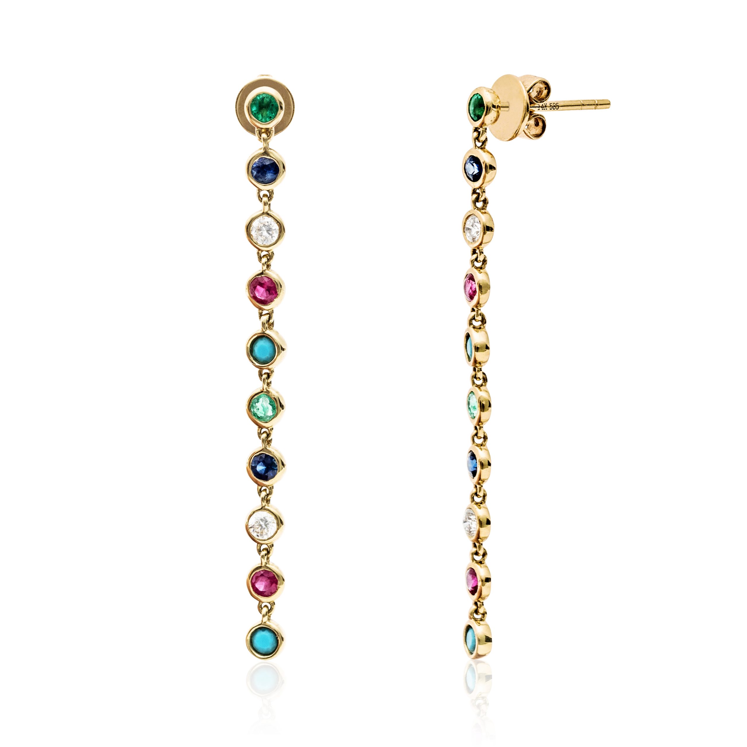 14K multicolor natural diamond and precious gemstones, such as emerald, ruby, sapphire, and turquoise. Diamond Weight: 0.16 ct. Please allow 2-3 weeks for fabrication.