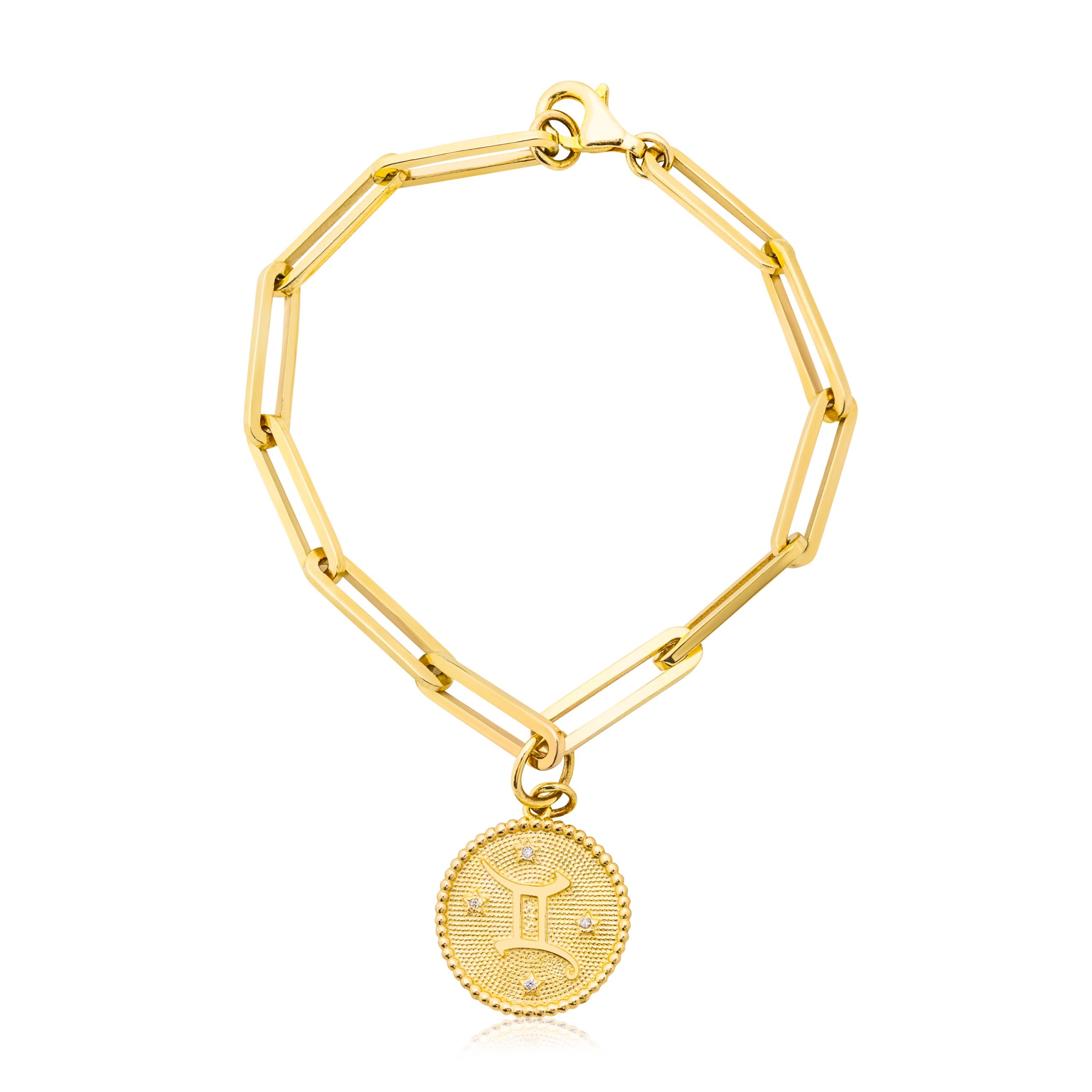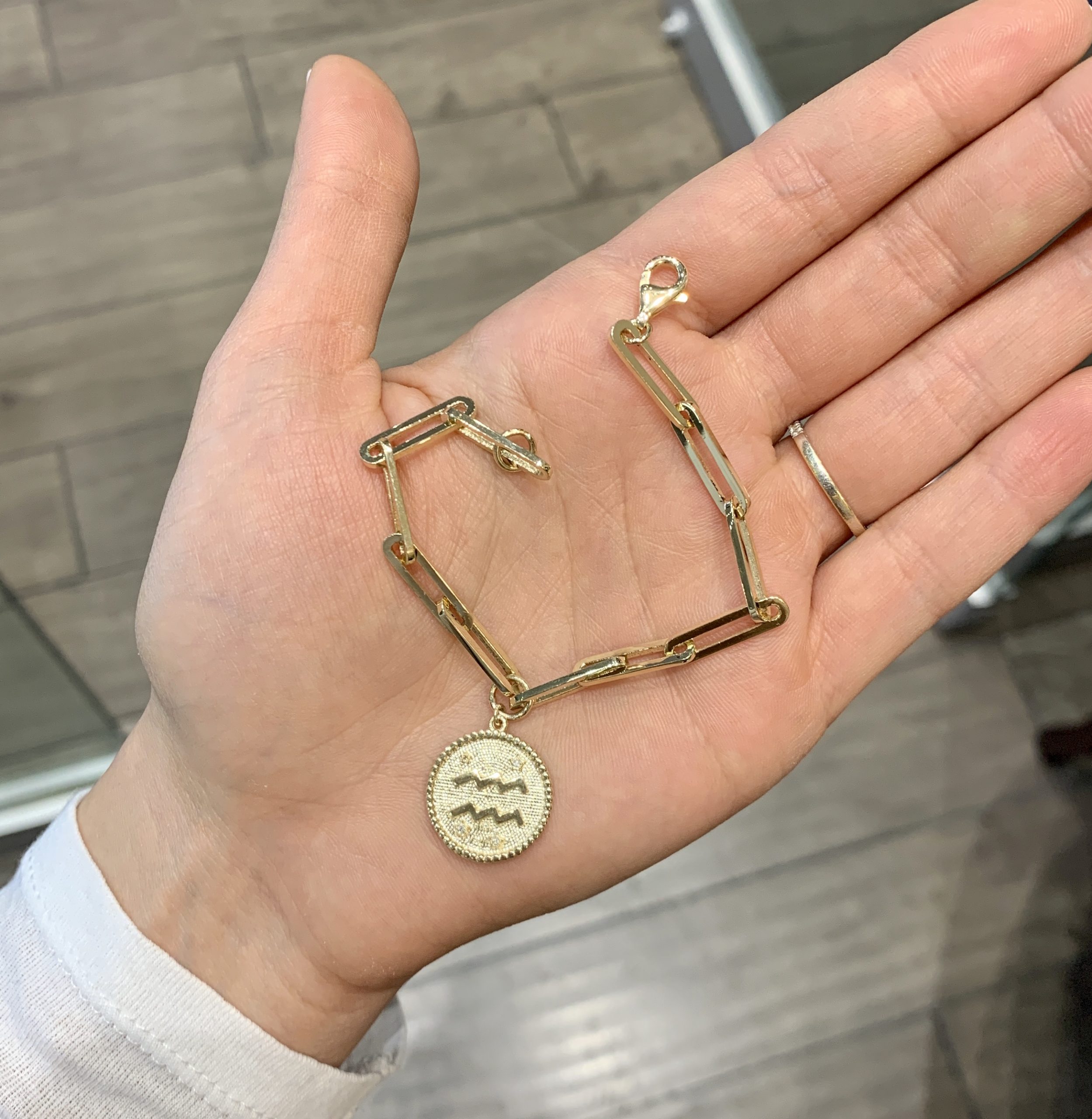Our signature paperclip bracelet with zodiac medallion, is a piece you will treasure forever. Gold Weight: approx. 10 grams. Please allow 2-3 weeks for fabrication.