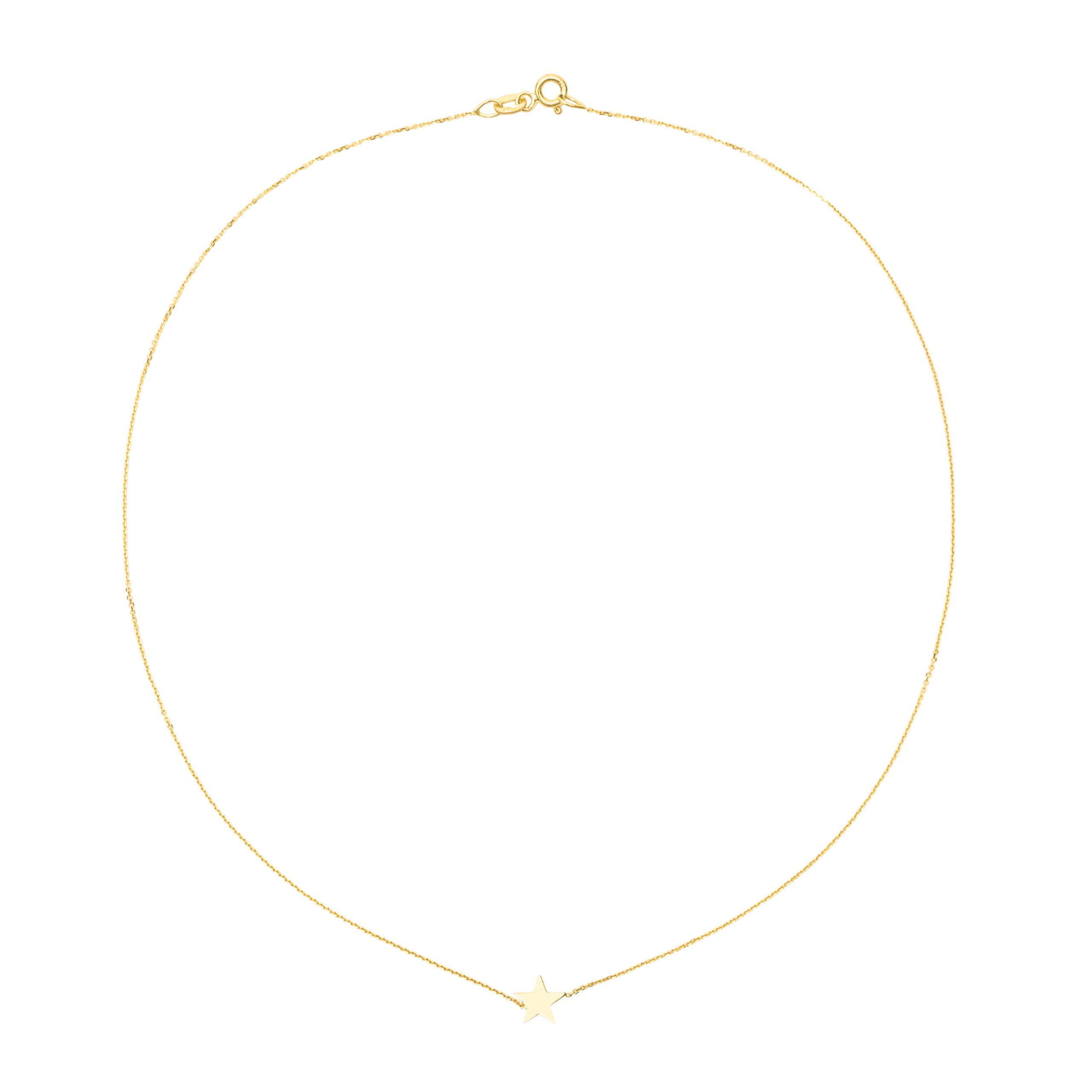 Our signature star necklace featuring one star. Chain is 16″ with additional hook at 15″. Available in either 14K or 10K solid gold. For custom length please leave a note at checkout. Please allow 2-3 weeks for production.