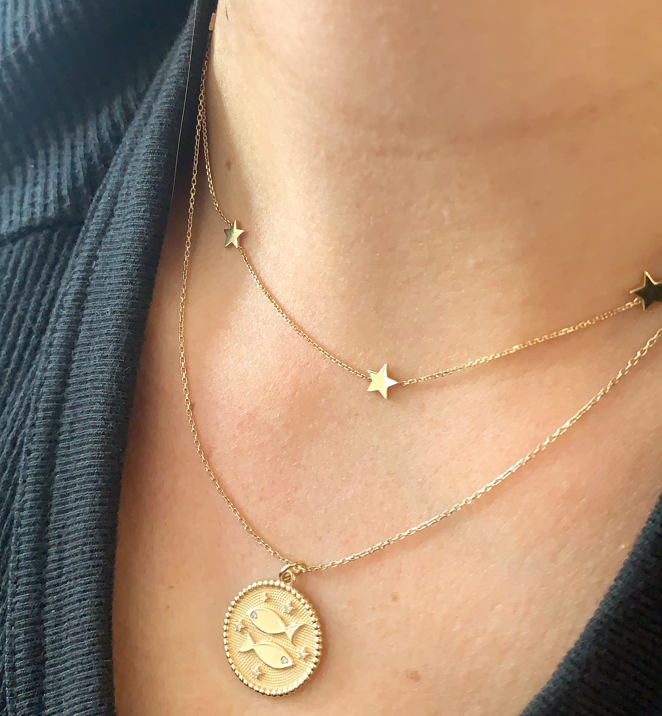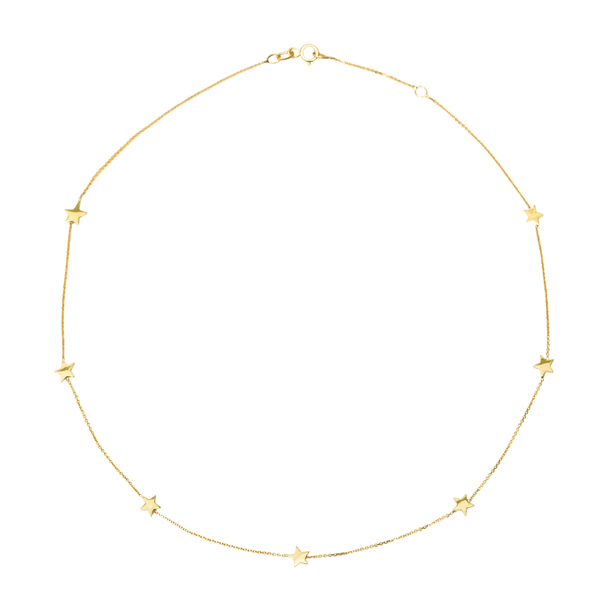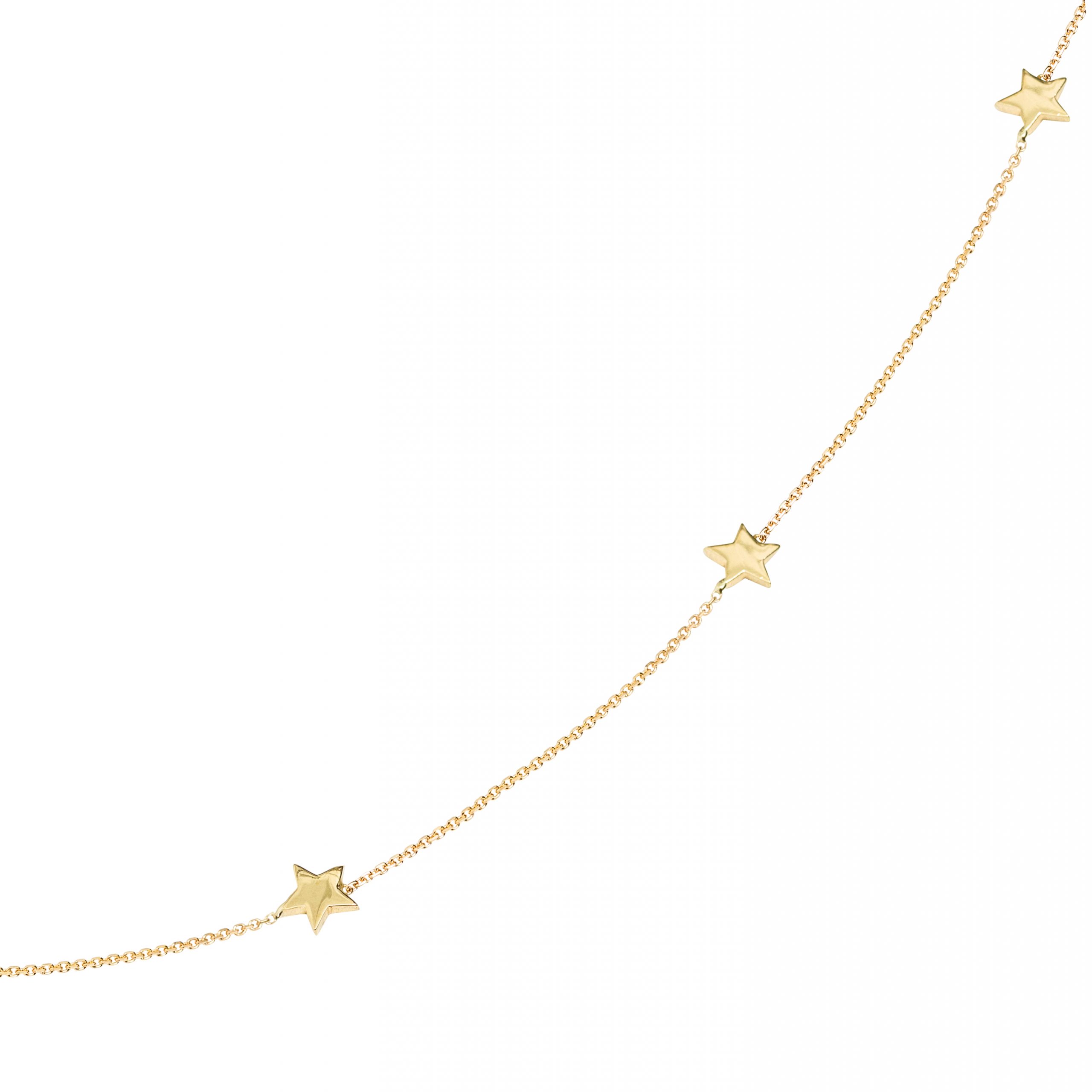 Stars by the yard necklace will be a favourite all year round. Available in 10K and 14K solid gold. Chain length is 16″ with a hook at 15″. For custom length please leave a note at checkout. Please allow 2-3 weeks for production.