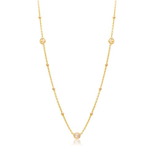 This 14K gold bracelet comes with five diamond stations. Diamond […]