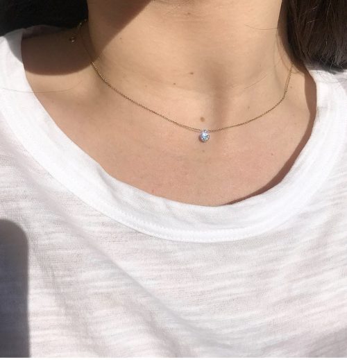 14K diamond slider necklace, features a 0.10CT diamond, bezel pendant […]