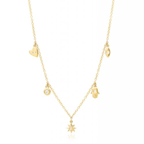 14K lucky charm necklace with diamond accents. Chain length is […]