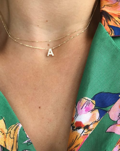 14K initial necklace with diamond pavé. Diamond weight: 0.07ct (varies […]