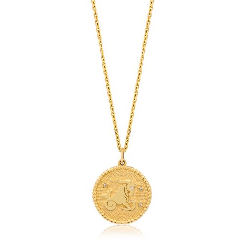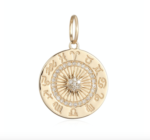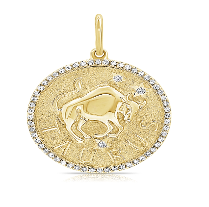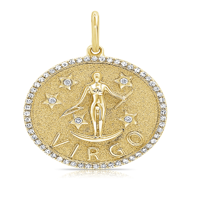 Zodiac Medallion with diamond pavé border, available in 14K Yellow […]