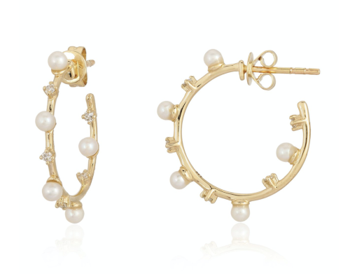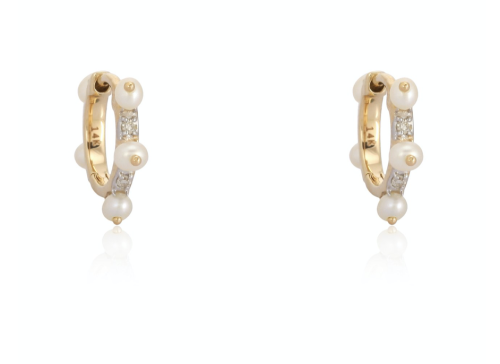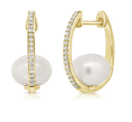 Pearl and diamond pave huggies, available in 14K Yellow Gold, […]