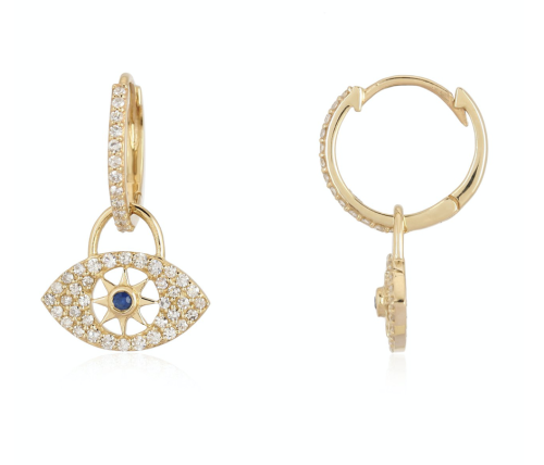 Stunning dangling evil eye diamond pave charm, featuring a blue […]