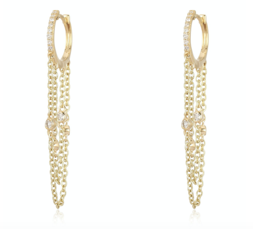 Diamond pave mini hoops, featuring 2 layers of dangling chain […]