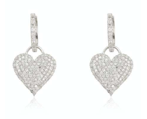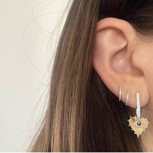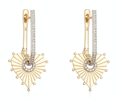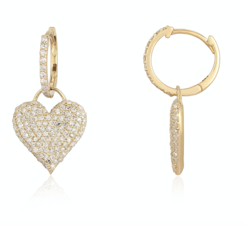 Diamond Pave dropped huggies with texture gold heart charm, available […]