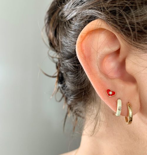 The perfect mini red enamel heart studs, with diamond accent. […]