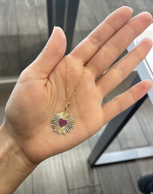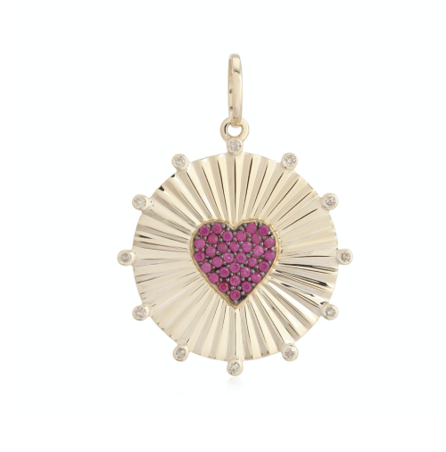 Available in 14K, features Diamond and Ruby pavé. Medallion is […]