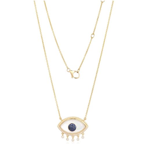 14K evil eye charm necklace with white sapphire pavé and […]
