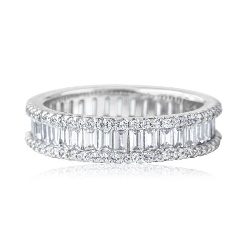 Baguette Eternity Band features full cut baguette diamonds and round […]